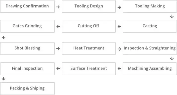 Lost foam casting also known as full mold process. An innovative casting method that uses wax or foam models in a shape and size similar to the casting to form a group of models via bonding, which are applied with refractory coating and then dried with heat, buried in dry quartz sand to form via vibration, and that liquid metal is poured under negative pressure to gasify the models so that liquid metal takes the position of model, and cools down and solidifies to form the casting.