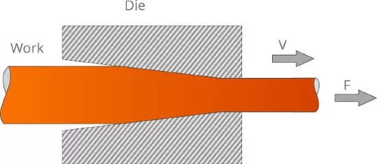 A processing method that utilizes the plasticity of metal to acquire products with appropriate shapes and sizes by applying force to one end of the metal and pull the metal blank through a die hole whose section is smaller than that of the metal blank.