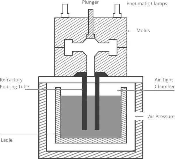 - Pressure and speed are adjustable during casting. Hence it is applicable to a variety of casting molds, such as metal mold and sand mold and can be used to cast various alloys and to produce castings in different sizes.